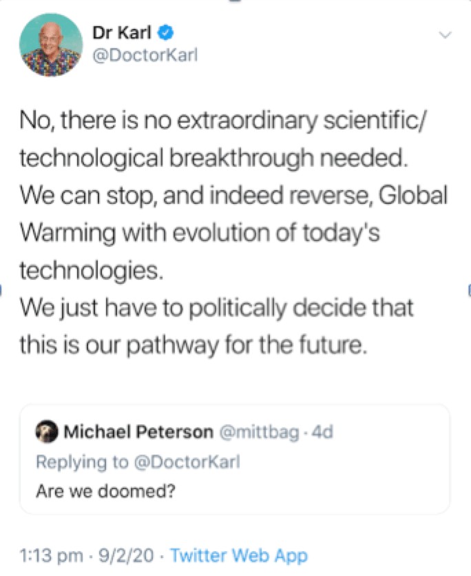 But do we need new technologies for the world (and Australia) to stop and reverse climate change? Dr Karl thinks not: