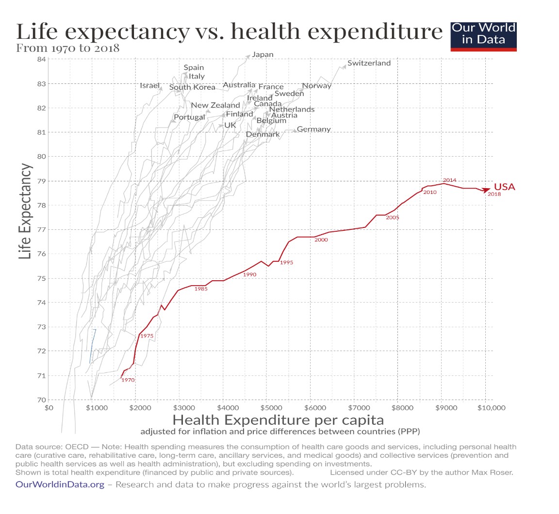 Graph 4. Longevity versus health expenditure; Retrieved from https://ourworldindata.org [open access online resource]